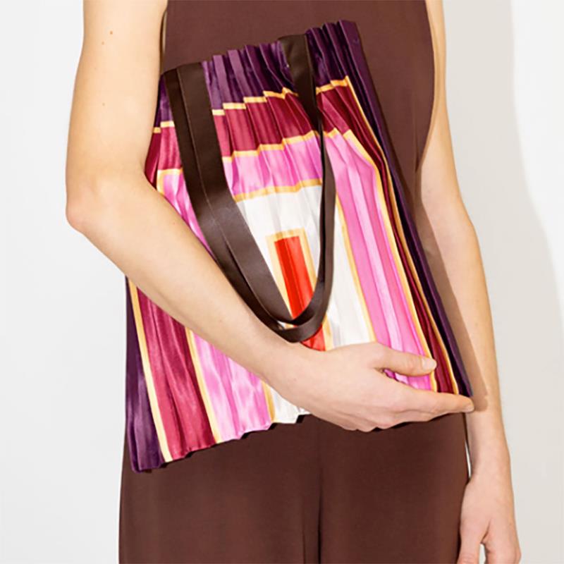 Preciosa bolsa plisada con vivos colores. Fabricada en raso sintético con efecto seda, sus reflejos metálicos le dan un aspecto muy característico. Es muy resistente y con buenos acabados, todos hechos a mano