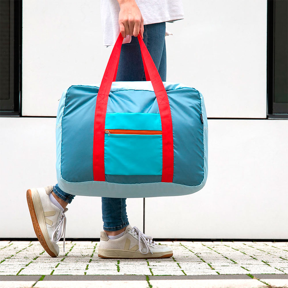 Esta bolsa de viaje y ocio está fabricada con tejido de poliéster de alta calidad y, por lo tanto, es ultraligera, repelente al agua y extremadamente resistente. Cuando no se utiliza, se puede plegar rápidamente para llevarla fácilmente.