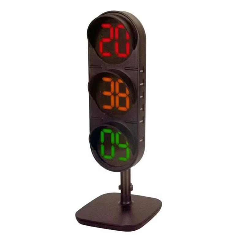 Divertido eloj despertador con forma de semáforo. Es extensible, por lo que se puede poner a diferentes alturas.