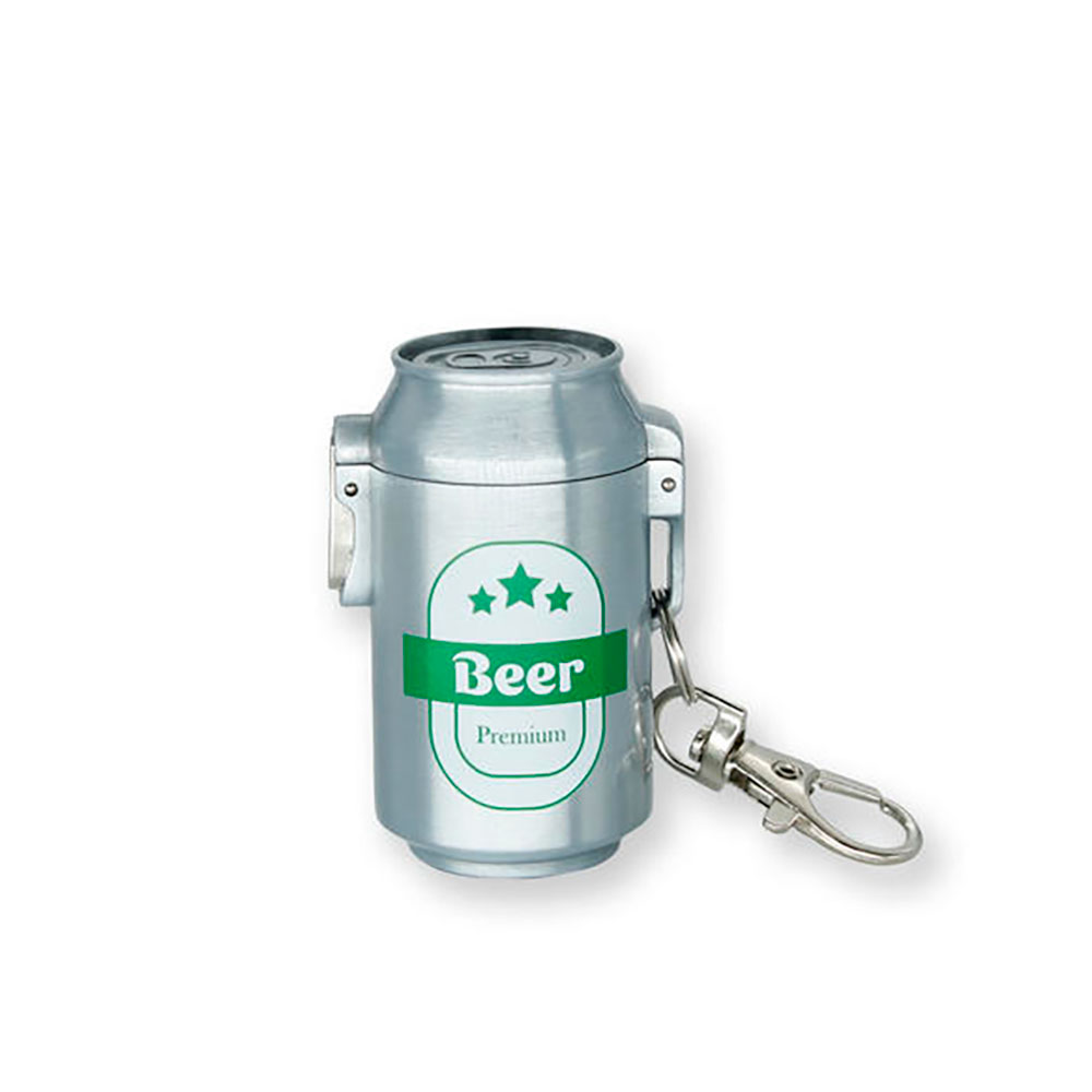 Cenicero divertido con forma de lata de bebida. Incluye un pequeño mosquetón, para llevarlo más fácilmente y su apertura es mediante un botón lateral.