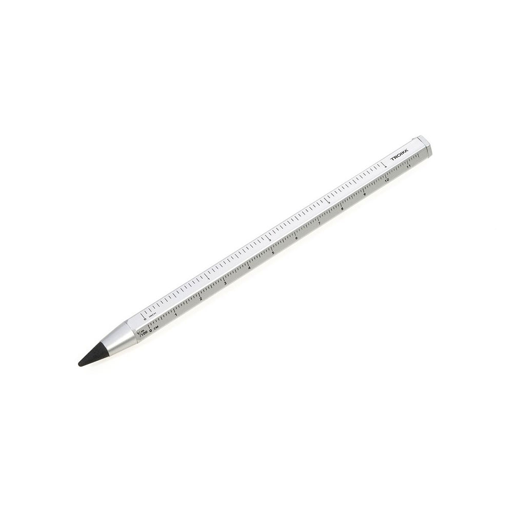 Lápiz multifuncional con punta de escritura infinita y sostenible (aprox. 20 km de longitud), HB, borrable, sin necesidad de sacar punta, regla en centímetros/pulgadas, escala 1:20/1:50, y punta de escritura intercambiable.