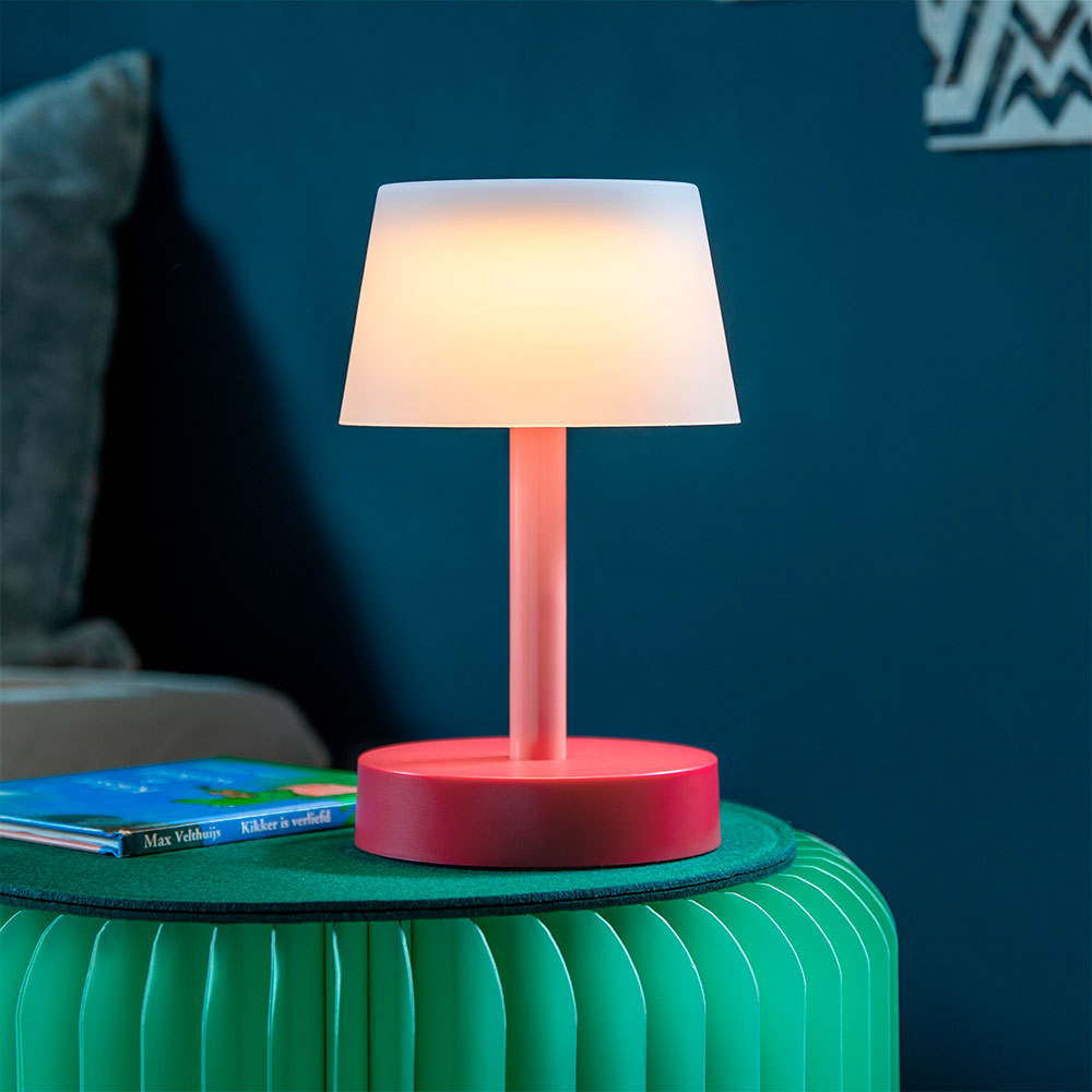 Esta lámpara se puede cargar mediante el puerto USB-C y proporciona hasta 100 horas de luz cuando está completamente cargada, sin necesidad de cables. Se puede atenuar de forma continua mediante el sensor táctil en la pantalla y es resistente a las salpicaduras.