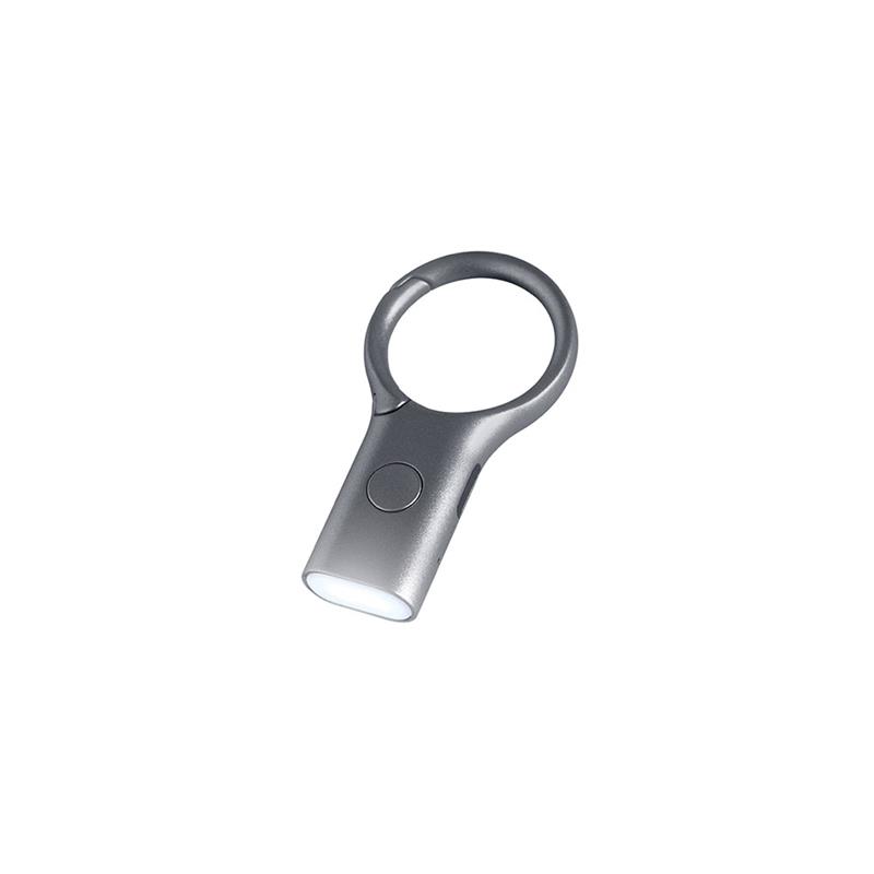 Una potente linterna LED diseñada en un gancho de metal seguro para un fácil acceso a una potente luz. La luz se engancha fácilmente a tus llaves y está ahí cuando necesites iluminar tu puerta, bolso o navegar por la oscuridad. Es recargable a través de USB-C y tiene una duración de la batería de ha...