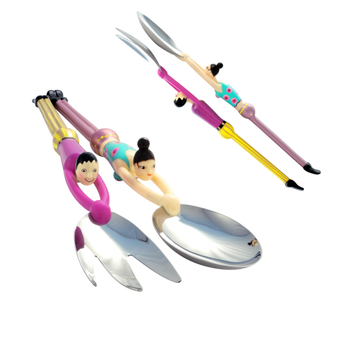 Divertidos cubiertos para servir la ensalada con forma de nadadores.