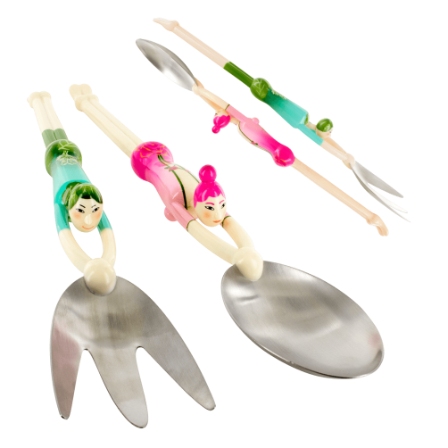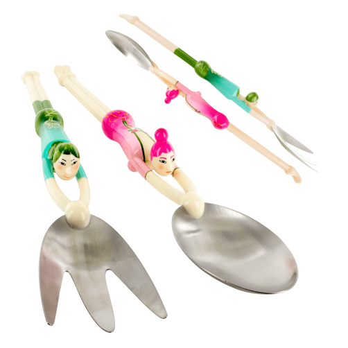 Divertidos cubiertos para servir la ensalada con forma de nadadores.