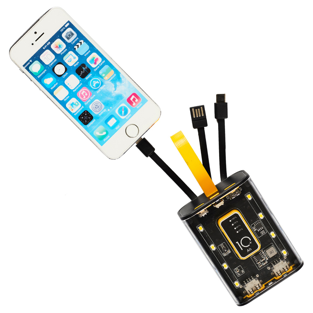 Batería recargable con 10000 mA de capacidad. Incorpora conexiones USB-A y USB-C, así como Lightning.