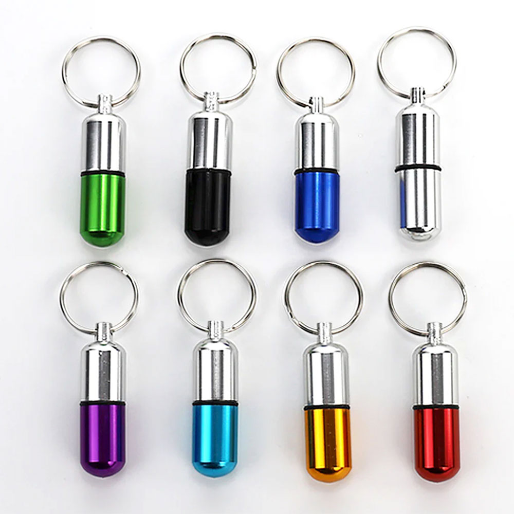 Divertido llavero en forma de píldora, con compartimento para poder llevar algo en su interior.