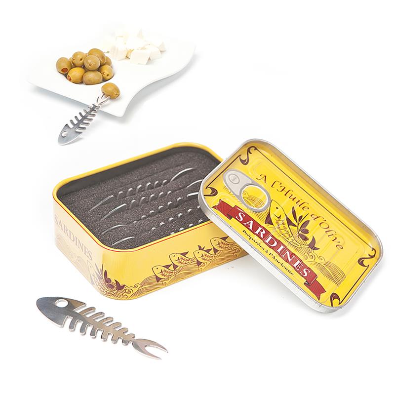Una forma original de decorar tu mesa a la hora del aperitivo, compuesta por seis tenedores con forma de raspa de sardinas fabricados en acero inoxidable, para más resistencia y durabilidad. Los tenedores se pueden lavar en el lavajillas.