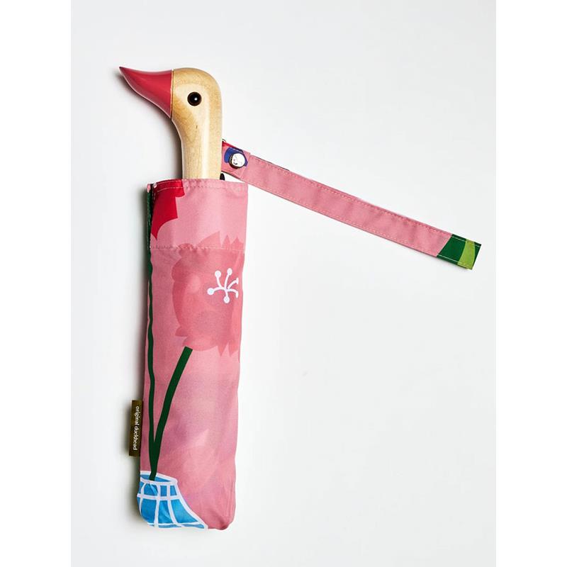 Divertido paraguas con el mango en forma de cabeza de pato. Hecho a mano con botellas recicladas (con cada paraguas se recuperan 12 botellas), su original mango hecho de madera hace que sea muy cómodo de llevar.