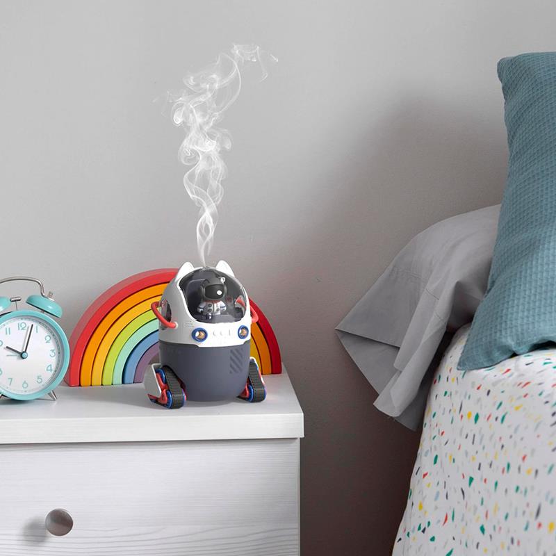 Con forma de nave espacial, el Humybot añade un toque futurista a tu espacio e incorpora una luz nocturna que crea una atmósfera relajante. Además asegura una humidificación continua y eficaz , pues cuenta con aproximadamente 4 horas de autonomía en el deposito.