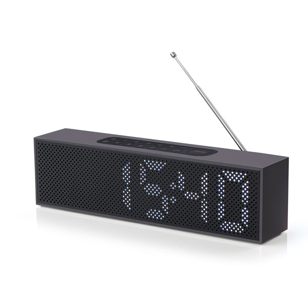 Radio despertador con FM y AM, con pantalla de LED para la hora y frecuencias de la radio. Tiene memoria para 6 emisoras de radio, antena para mejor sintonización y puerto para auriculares. También se le puede conectar un teléfono o mp3 para escuchar tus músicas favoritas.