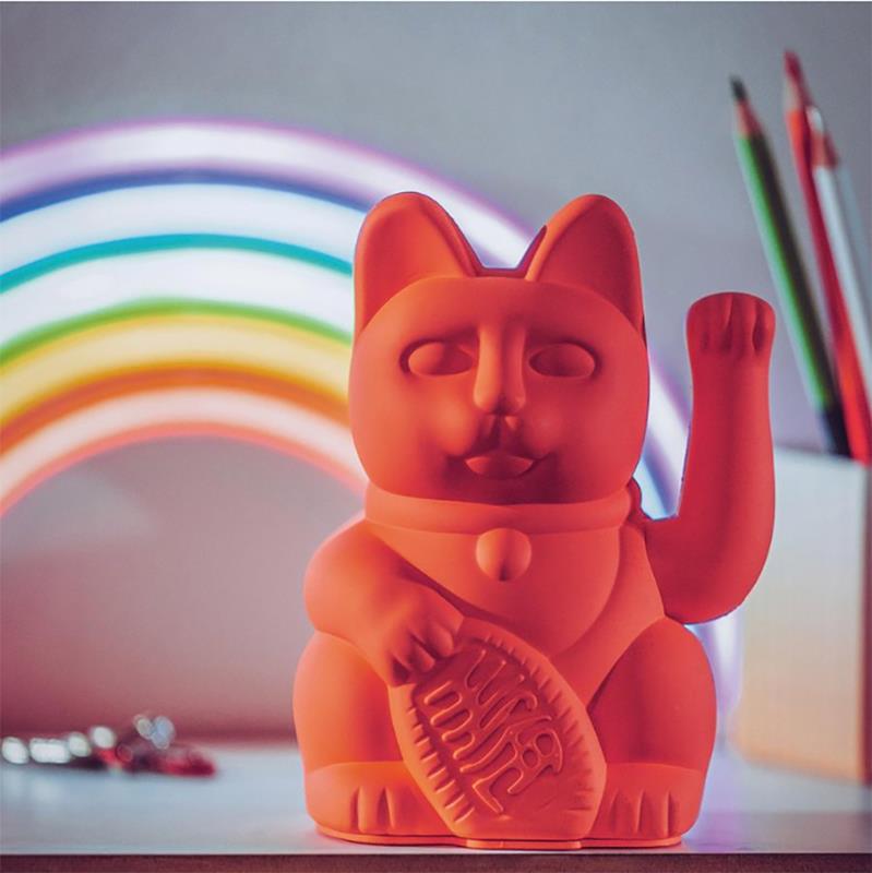 Gato de la suerte en color naranja, el color de la energía y la pasión. Según la leyenda, este gato trae buena suerte a su dueño. Maneki-neko como lo llaman en Japón, que es su país de origen, es una pieza ideal para decorar tus espacios o para regalar suerte, energía y pasión.