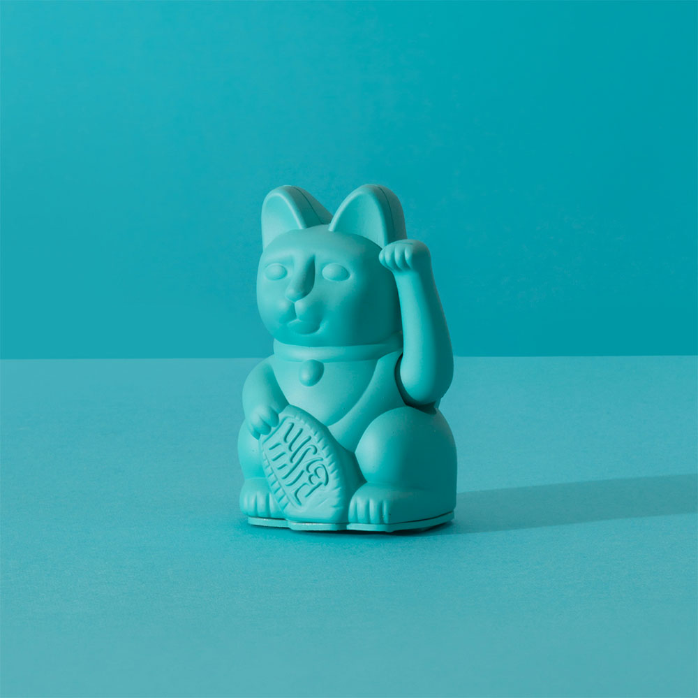 Gato de la suerte en color turquesa, el color de la amistad y el mindfulness. Según la leyenda, este gato trae buena suerte a su dueño. Maneki-neko como lo llaman en Japón, que es su país de origen, es una pieza ideal para decorar tus espacios o para regalar suerte en la vida familiar y en comunidad...
