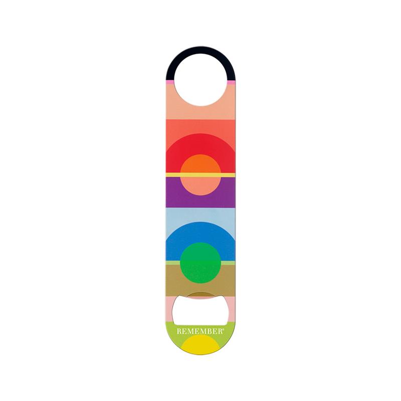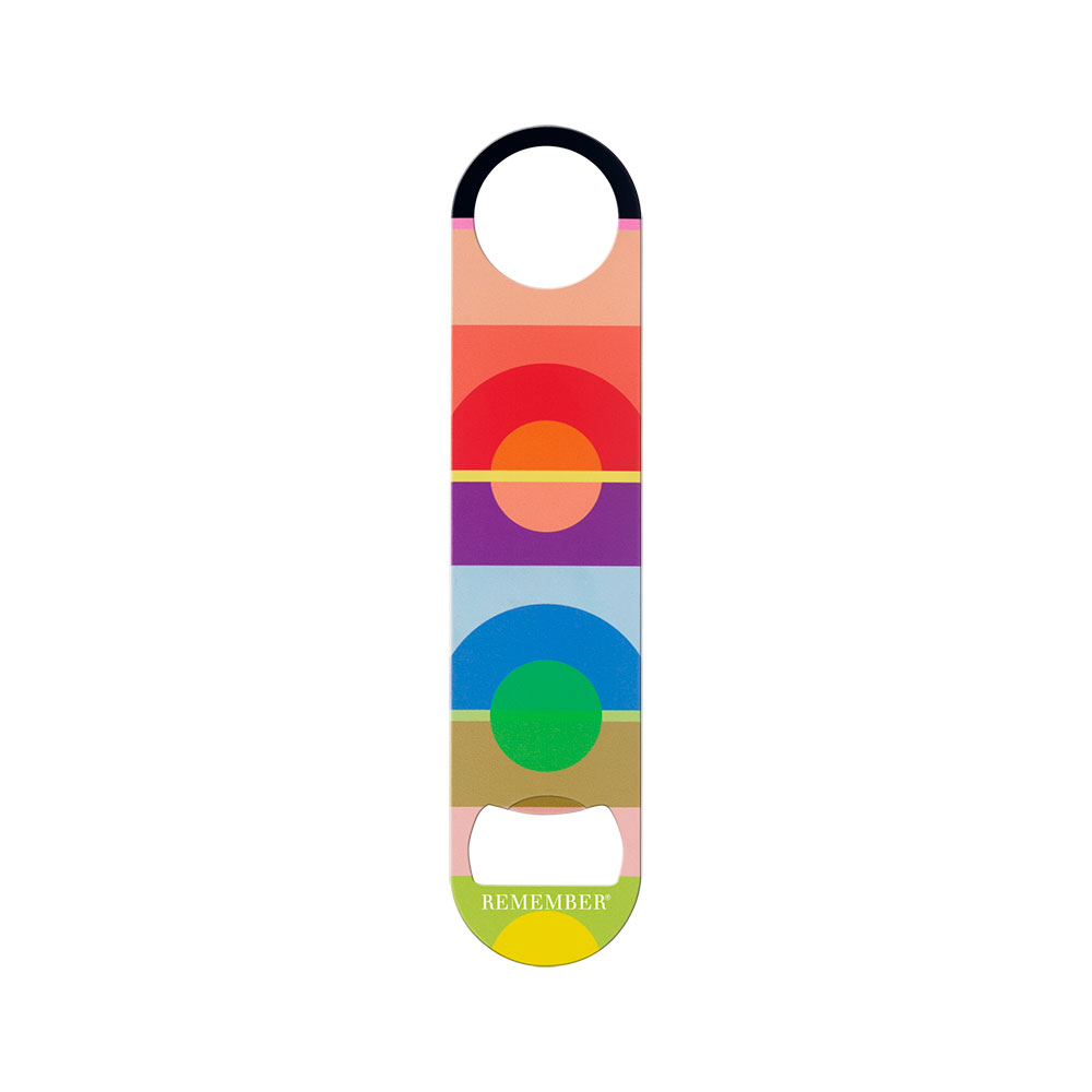 Para todos aquellos a los que les encantan los colores y las formas y les gusta quitar los tapones de las botellas con estilo: un abridor de botellas plano y colorido que seguro encontrarás en tu cajón de los cubiertos. También es ideal como regalo para la próxima fiesta.